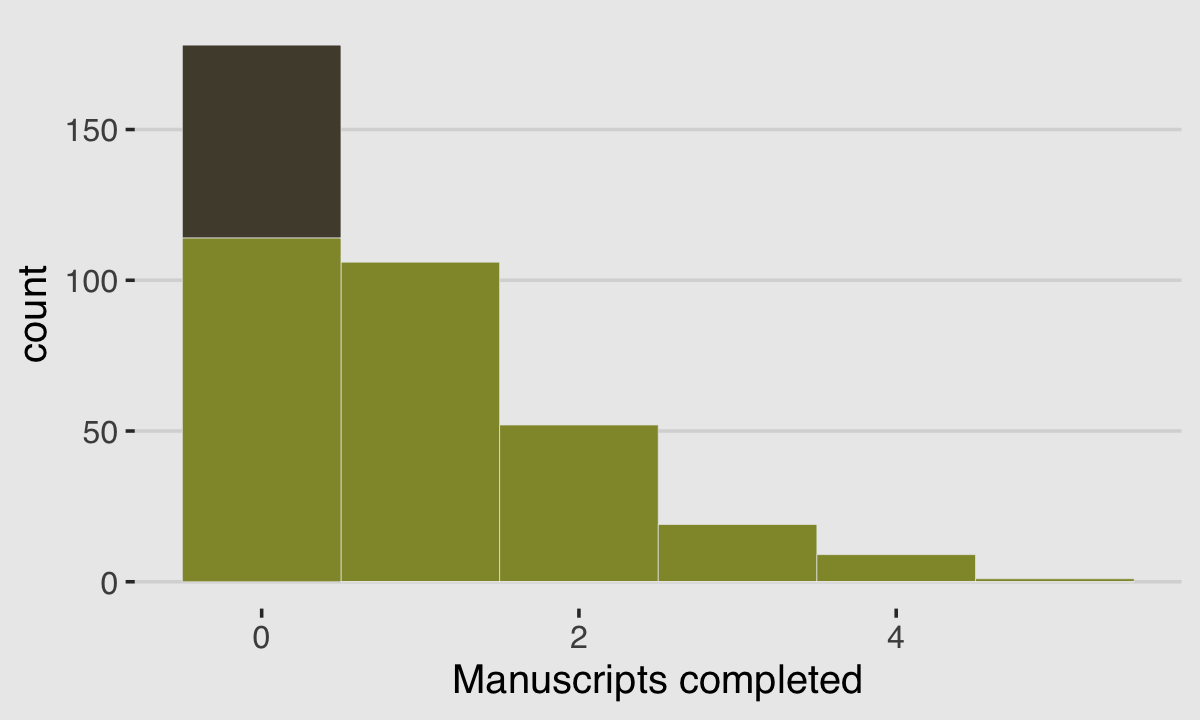 Now we’re ready to make our version of the simple Figure 11.1 histogram of our primary variable, response.