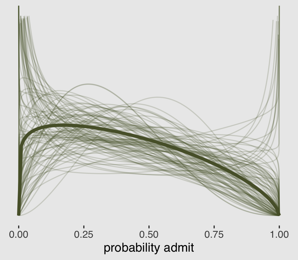 It is very common in the social sciences, and occasional in the natural sciences, to have an outcome variable that is discrete, like a count, but in which the values merely indicate different ordered levels along some dimension. For example, if I were to ask you how much you like to eat fish, on a scale from 1 to 7, you might say 5. If I were to ask 100 people the same question, I’d end up with 100 values between 1 and 7. In modeling each outcome value, I’d have to keep in mind that these values are ordered because 7 is greater than 6, which is greater than 5, and so on. But unlike a count, the differences in values are not necessarily equal.