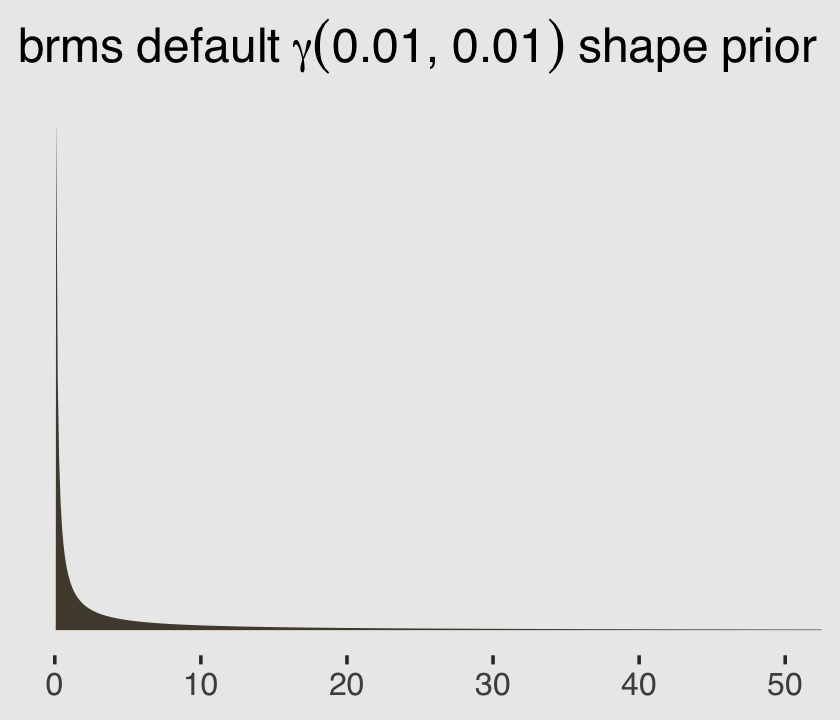 But what if you wanted to use the base R dgamma() function instead of McElreath’s rethinking::dgamma2()? Well, the dgamma() function parameterizes the gamma density in terms of shape and scale, following the equation