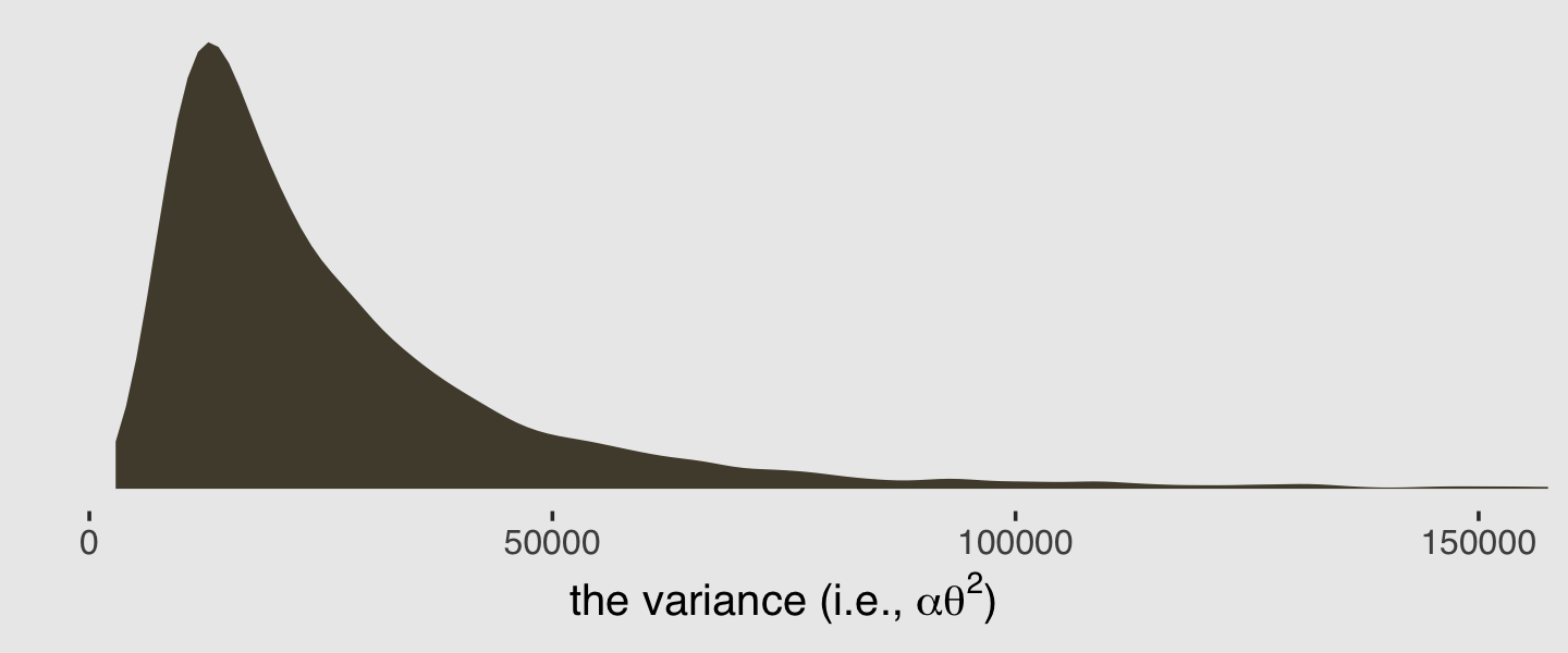 It turns out it’s possible to get the variance of a gamma distribution with \(\alpha \theta^2\). Here’s that posterior.