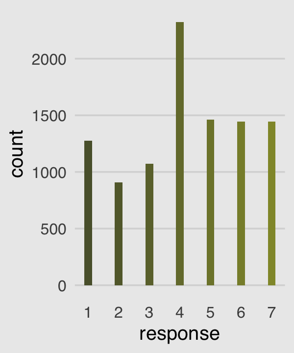 ## $ response <int> 4, 3, 4, 3, 3, 3, 5, 4, 4, 4, 4, 4, 4, 5, 4, 4, 4, 4, 4, 3, 3, 3, 4, 4, 5, 4, 4, 3, 4, 4, …