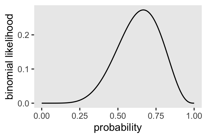 mutate(likelihood = dbinom(w, size = n, prob = p_grid)) %>%