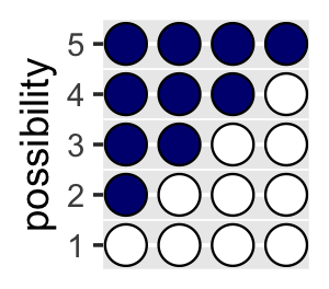 If we’re willing to code the marbles as 0 = “white” 1 = “blue”, we can arrange the possibility data in a tibble as follows.