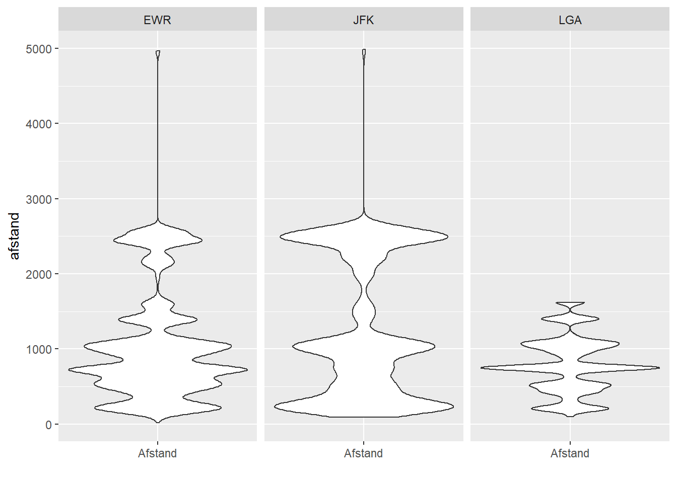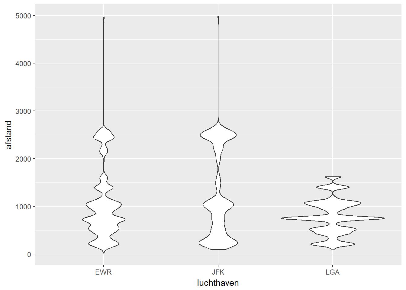 - In tegenstelling tot de boxplot, kan je bij een violinplot wel niet duidelijk zien waar bijvoorbeeld het ‘midden’ van je data is.