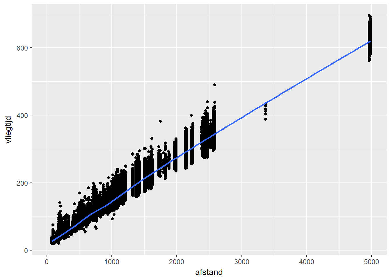 ggplot(data, aes(x=afstand, y=vliegtijd)) +