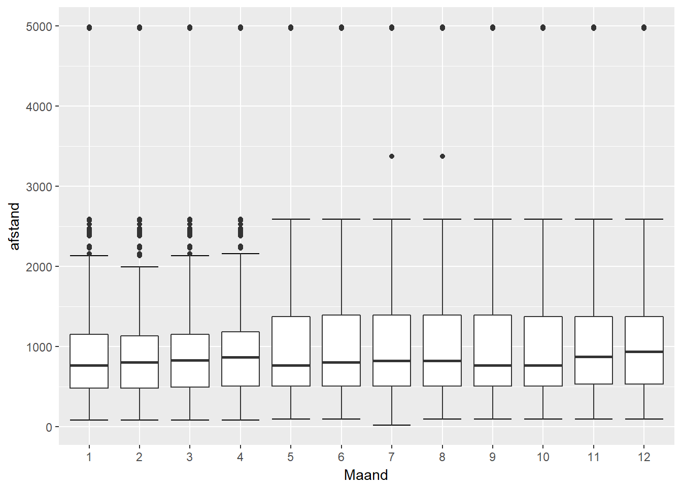 ggplot(data, aes(x=as.factor(month(datum)), y = afstand)) +