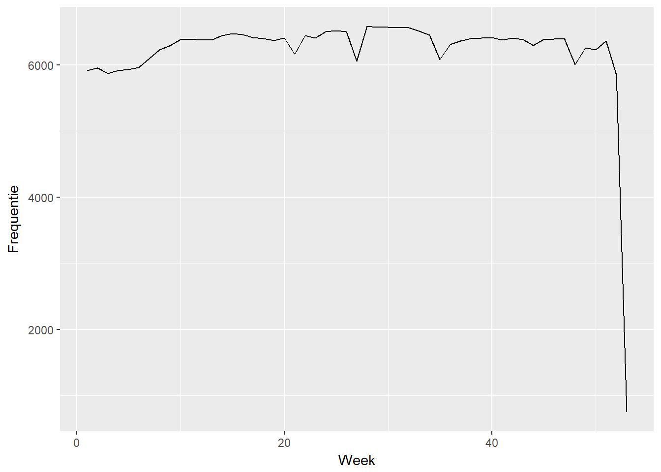 - Er is echter een specifieke situatie waarbij een betere visualisatie mogelijk is, namelijk wanneer er op ieder mogelijk tijdstip slechts 1 observatie is.