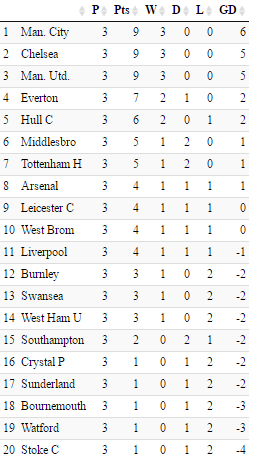 None really. The three top positions are already occupied by the pre-season favourites and the promoted clubs’ good showing in the first two rounds was not repeated