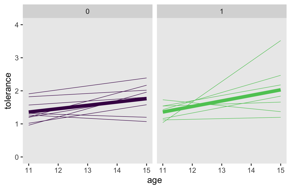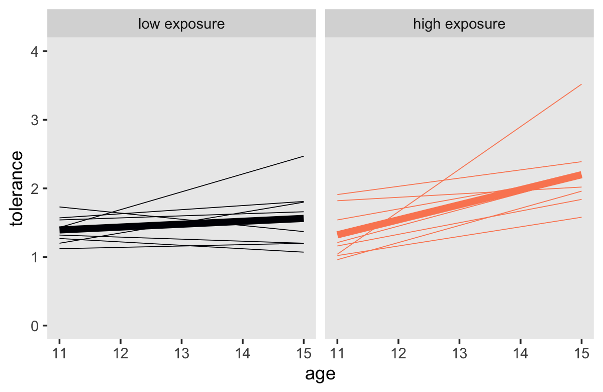ggplot(aes(x = age, y = tolerance, color = exposure)) +