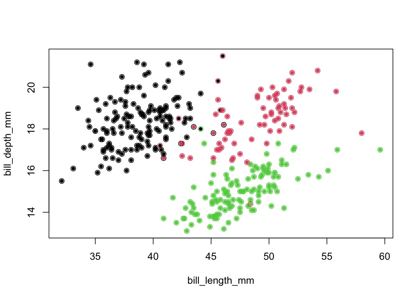 points(penguins[,c(3,4)],pch=1,col=as.numeric(newLabel),cex=1.1)