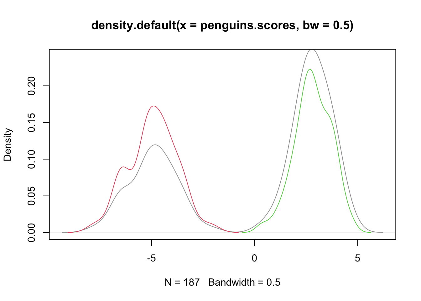 lda_model <-MASS::lda(species ~ island + bill_length_mm + bill_depth_mm + flipper_length_mm + body_mass_g+sex+year, data=penguins, CV=FALSE) - For unsupervised learning methods, visualization of clusters can be helpful. We use