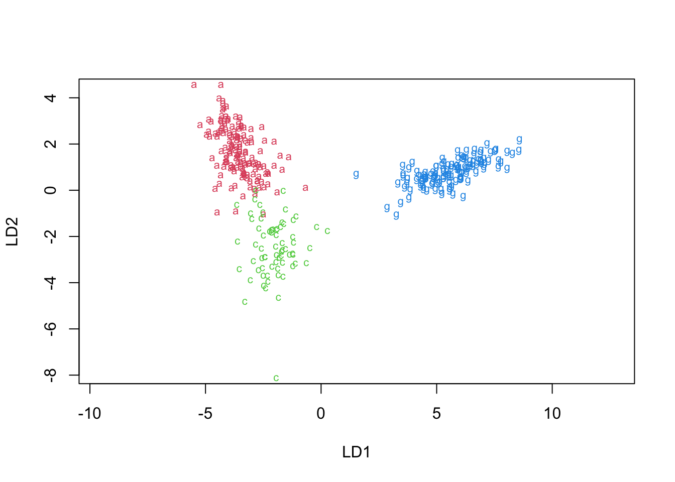 - Notice that three observations that are misclassified using LDA. - You can see them in the prior plot.- Note: we could use a ‘leave one out’ approach to classification as well.