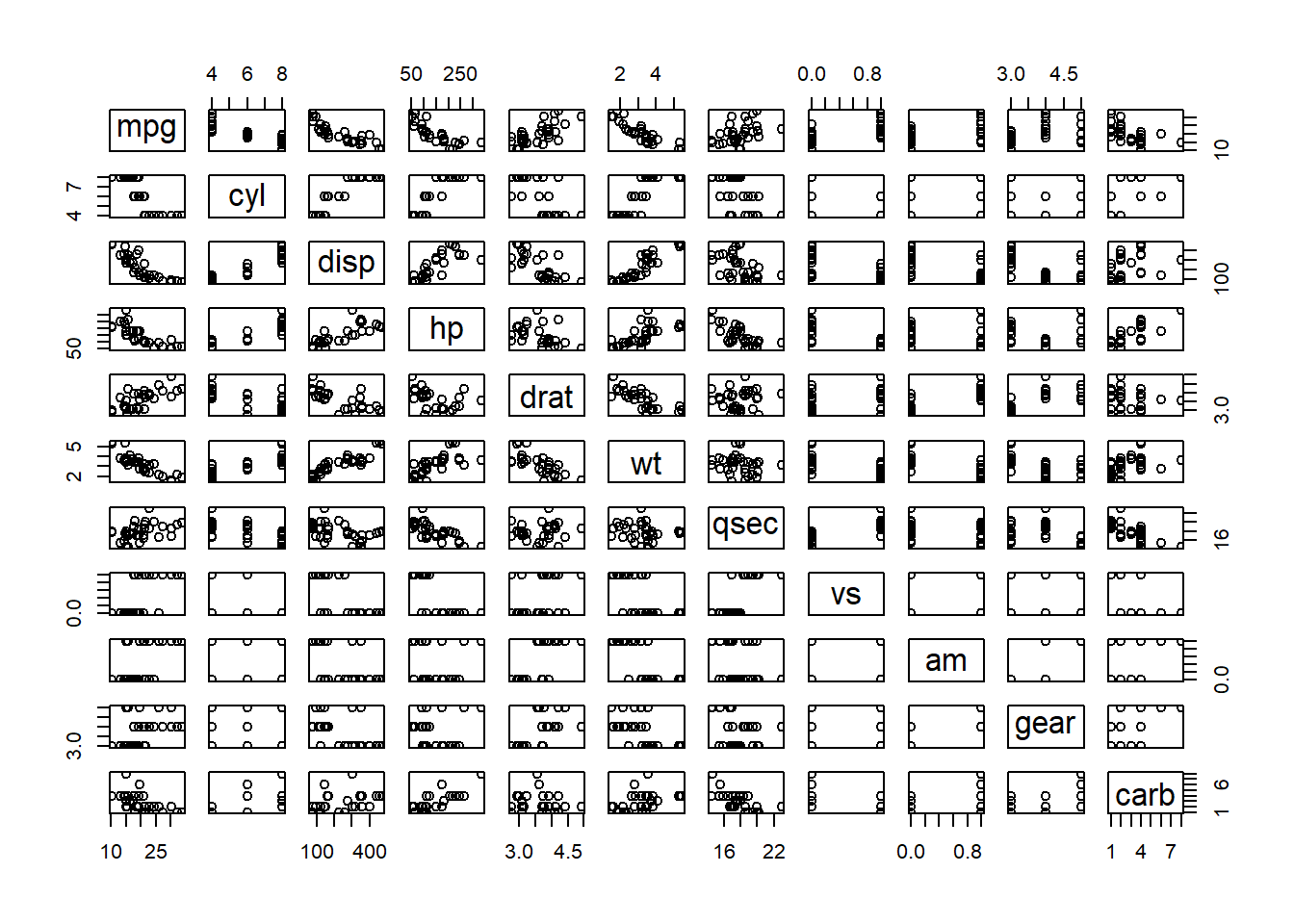 ## mpg cyl disp hp drat wt qsec vs am gear carb