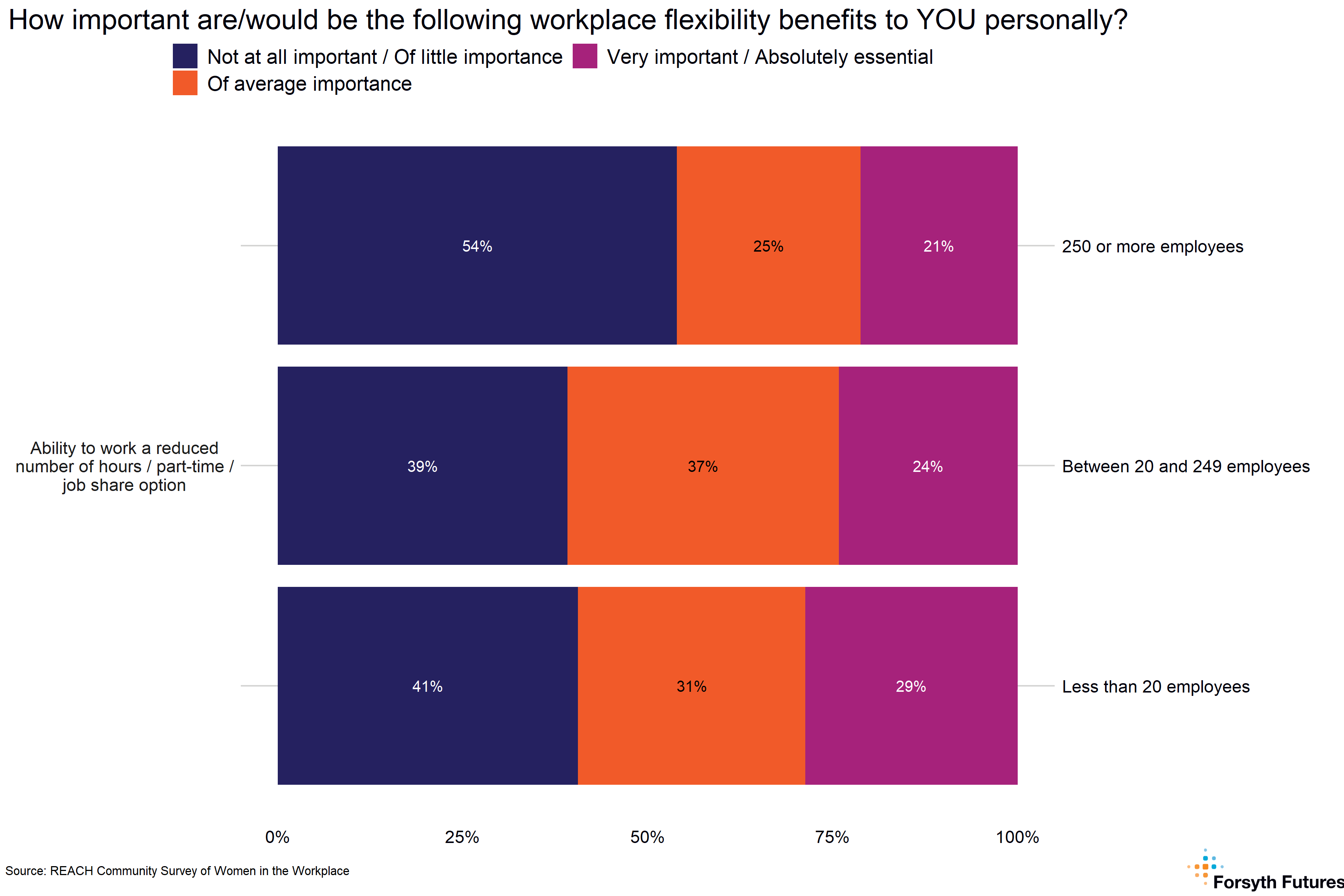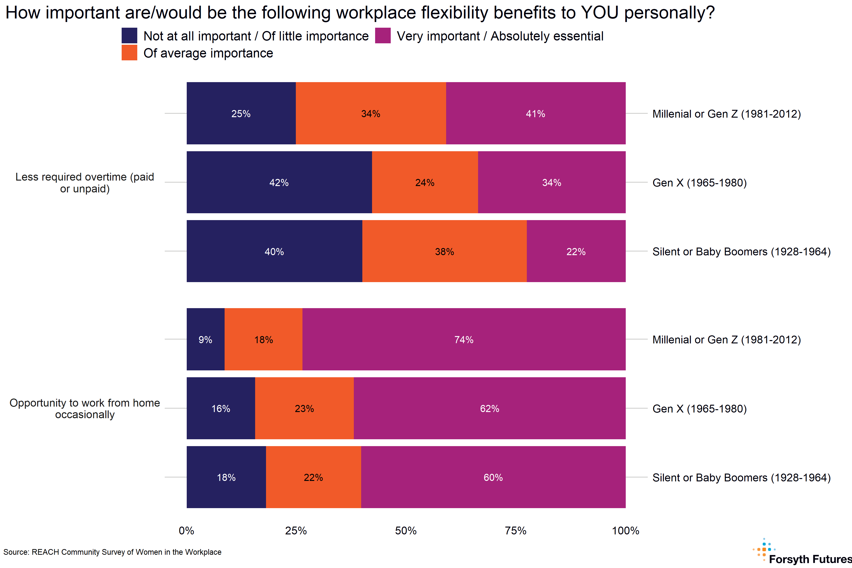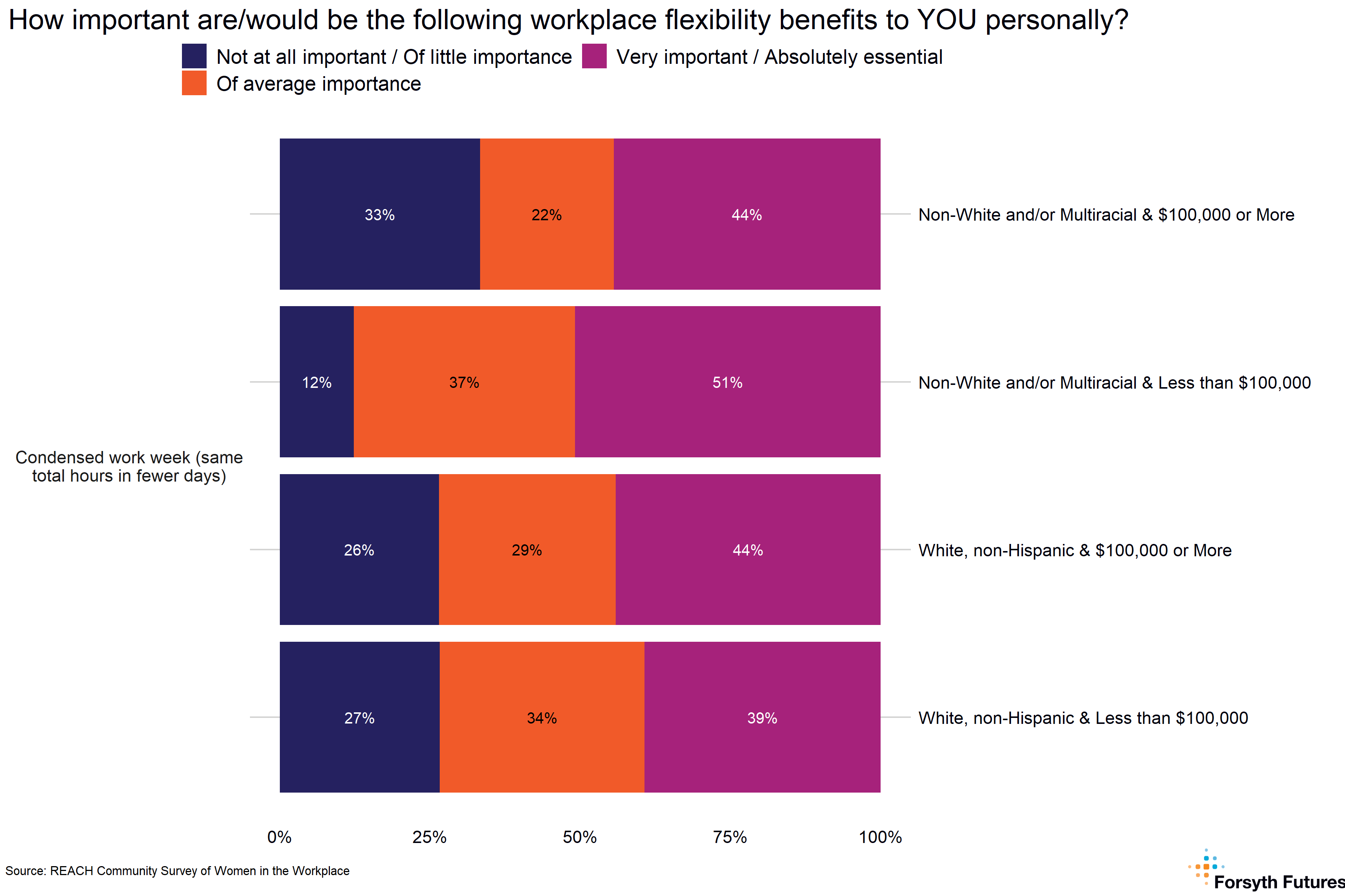 Among the disaggregations, analysts found the following statistically significant relationships between workplace flexibility benefits: