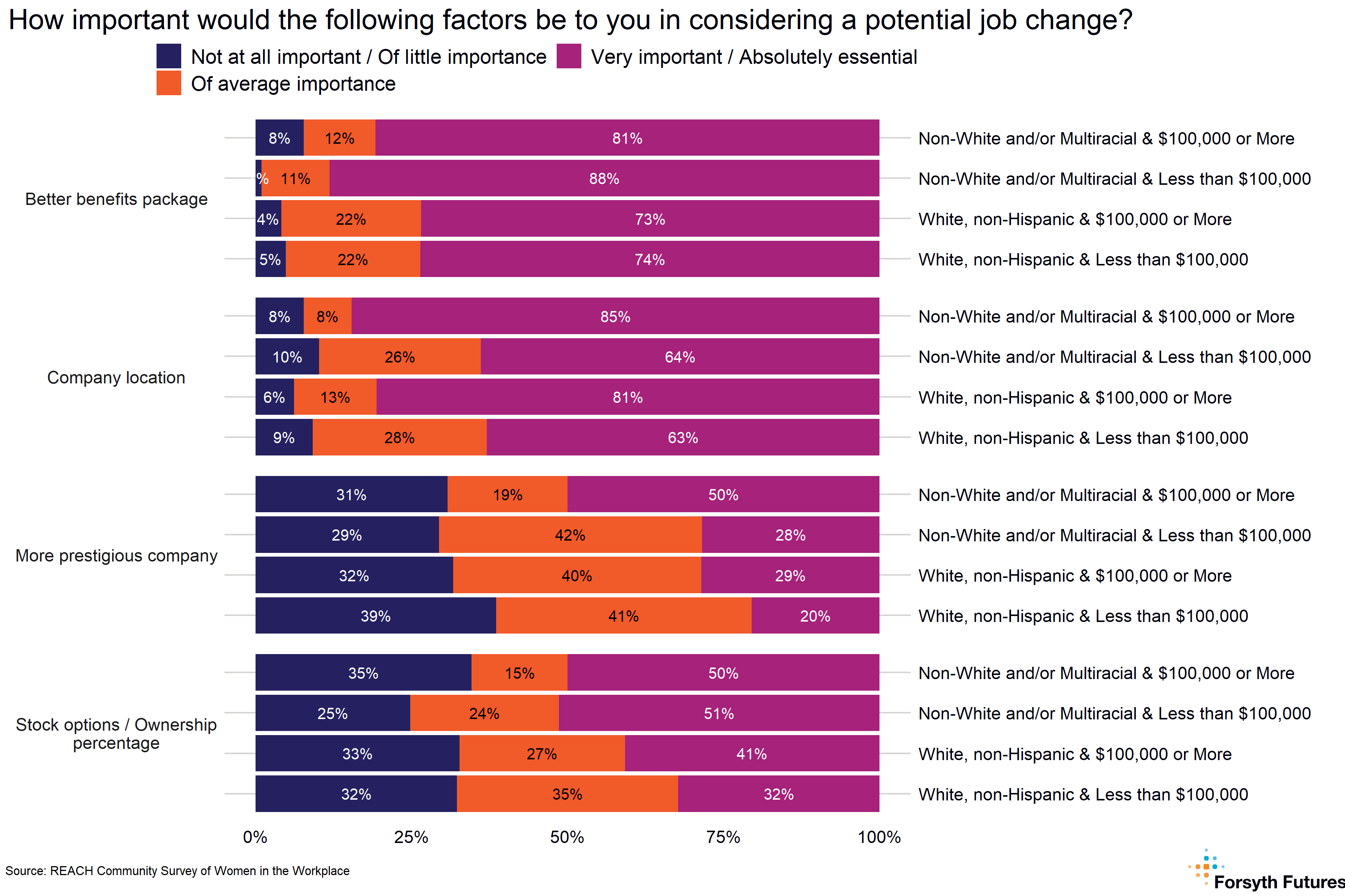 Among the disaggregations, analysts found the following statistically significant relationships between the factors that influence job change: