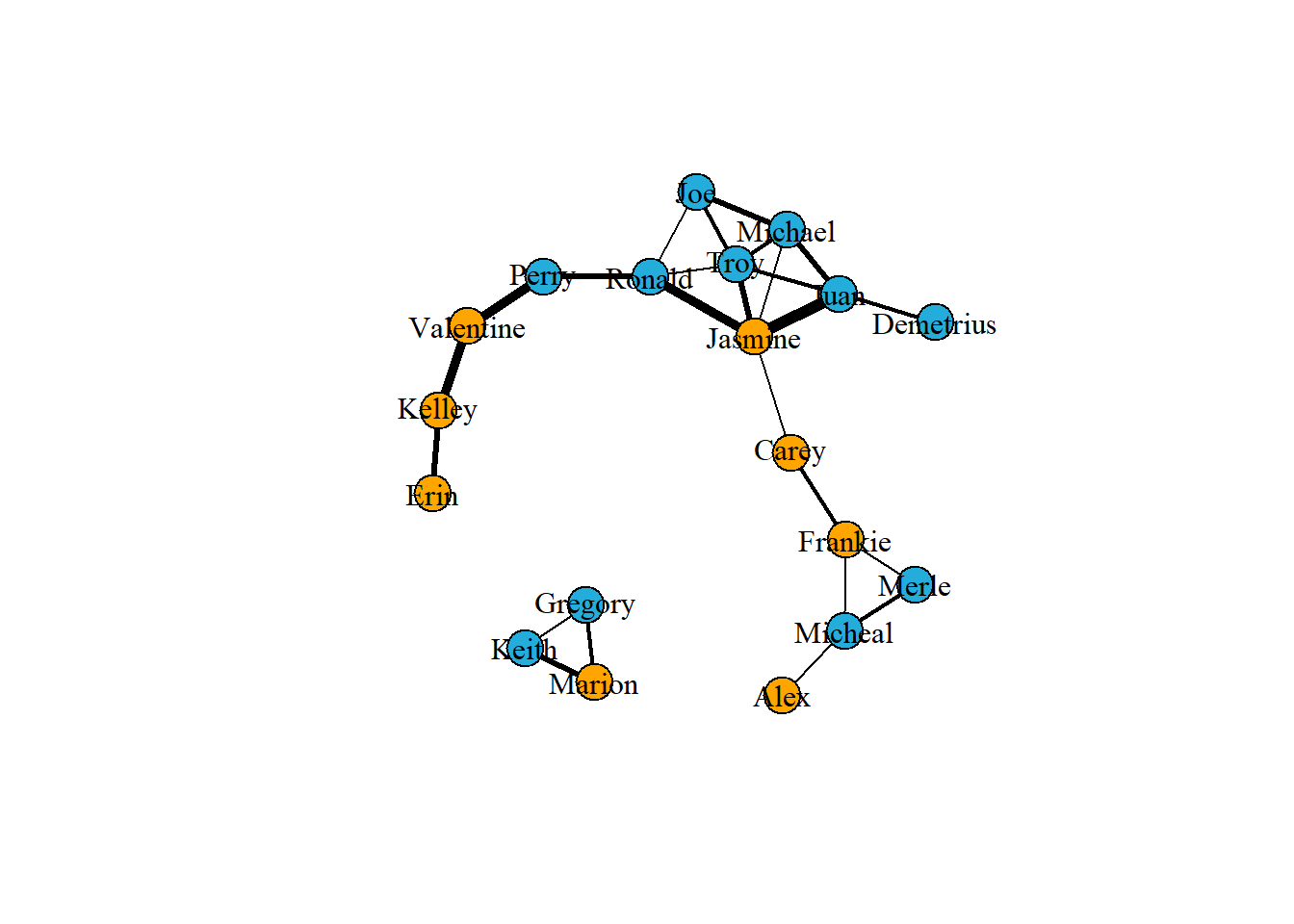paste("This graph tells me that boys prefer to make friends and their relationship graph is more aggregated")## [1] "This graph tells me that boys prefer to make friends and their relationship graph is more aggregated"