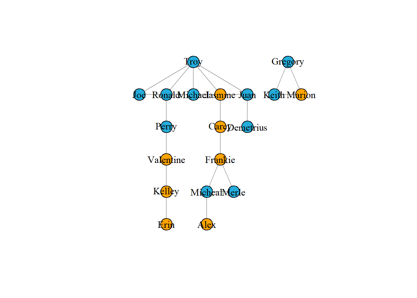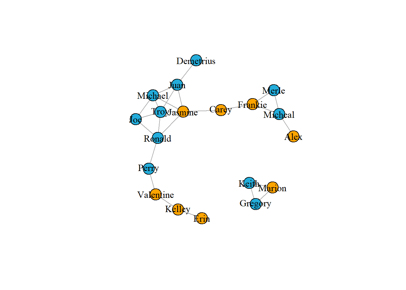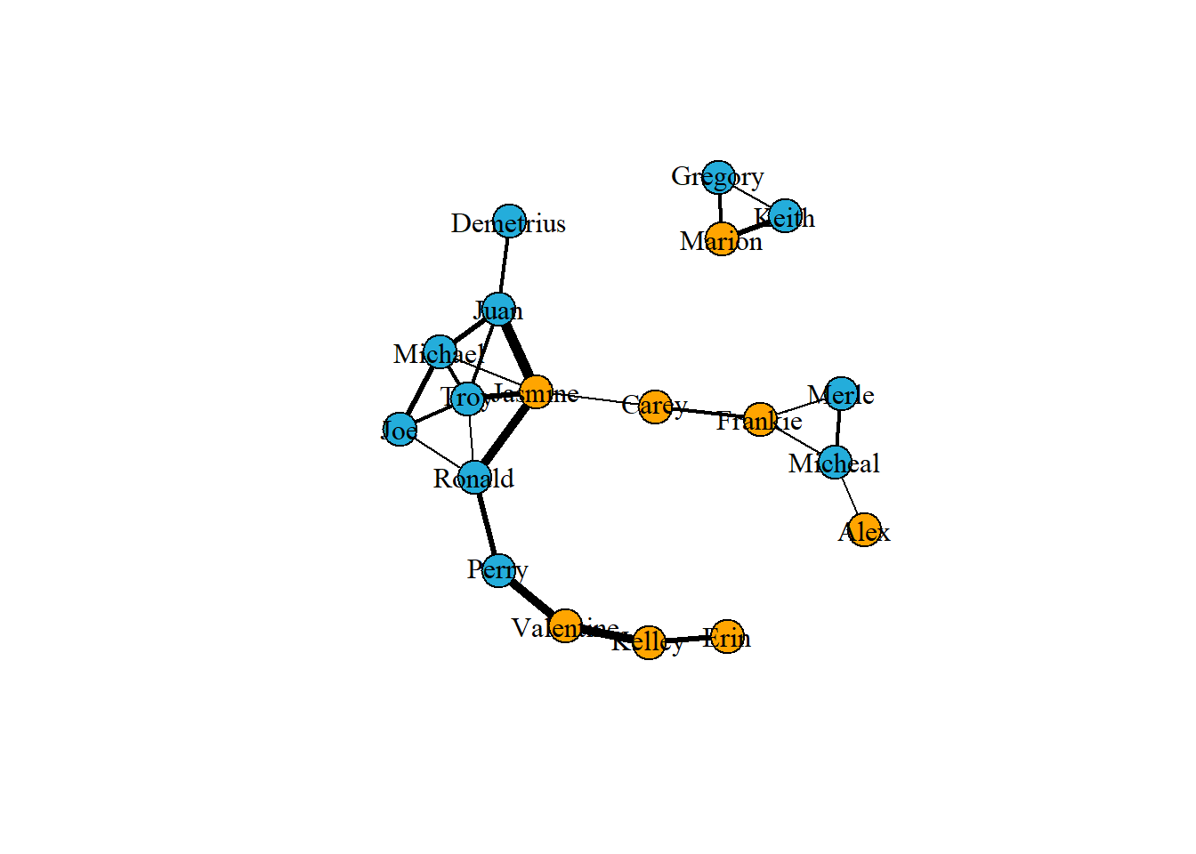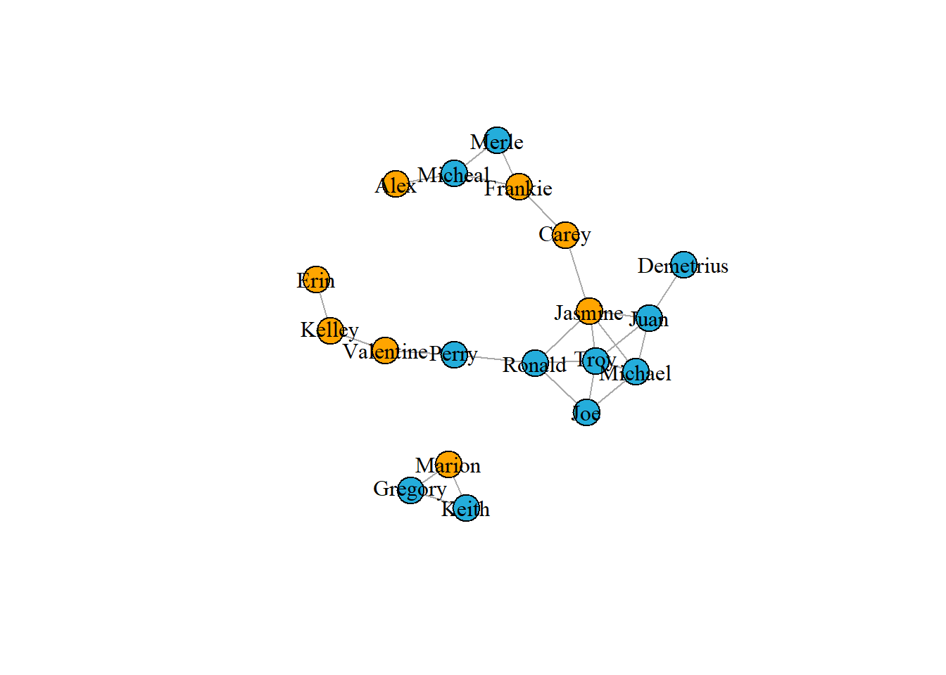 V(g1)$color <- ifelse(V(g1)$gender == "F", "orange", "#24addb")