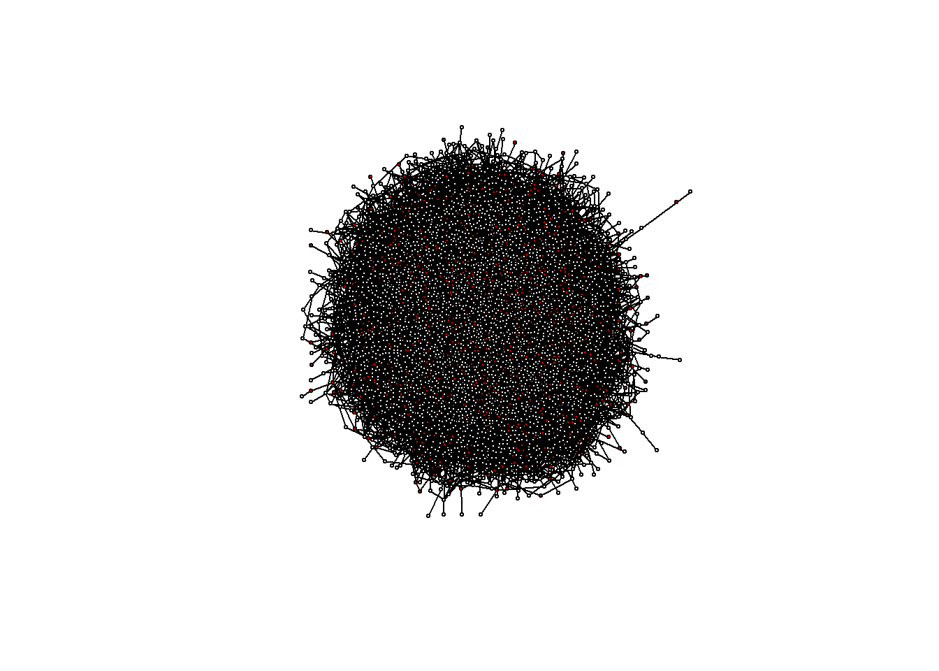 plot(churnerNetwork, vertex.label = NA, vertex.size = 2)