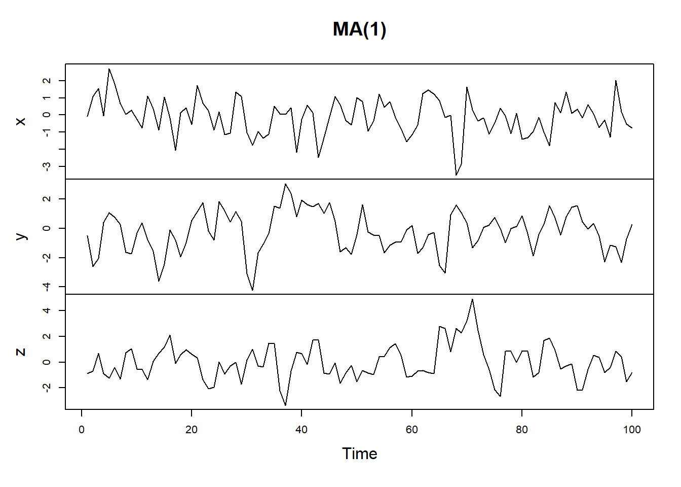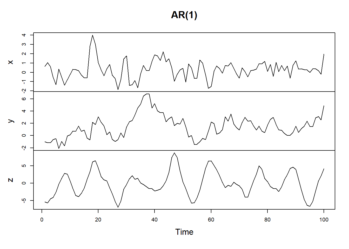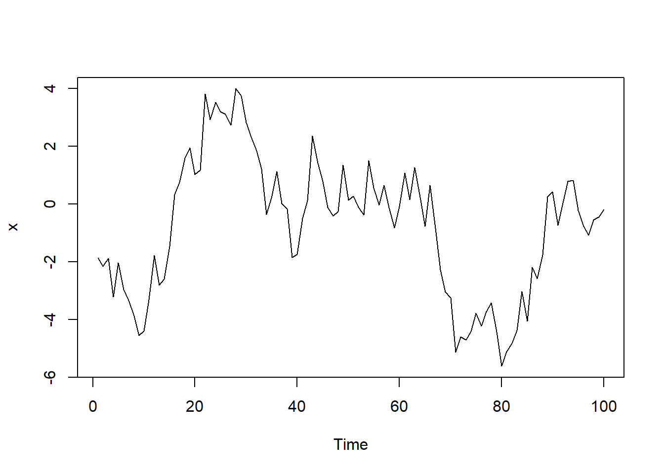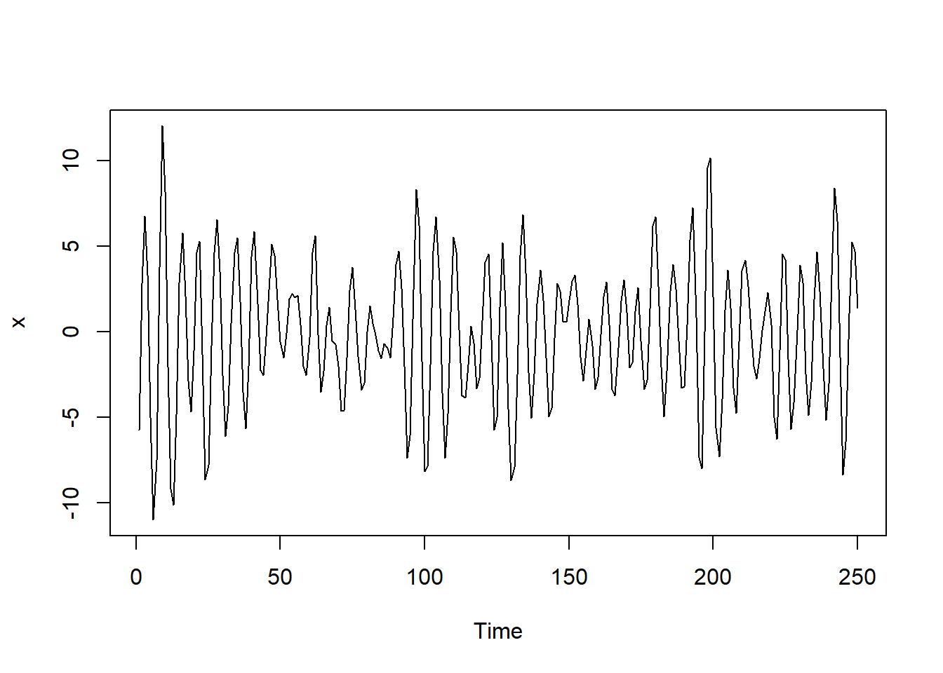 我们可以生成下面的数据 > 例子来自P146 Time Series Analysis and Its Applications With R by Robert H.Shumway and David S.Stoffer