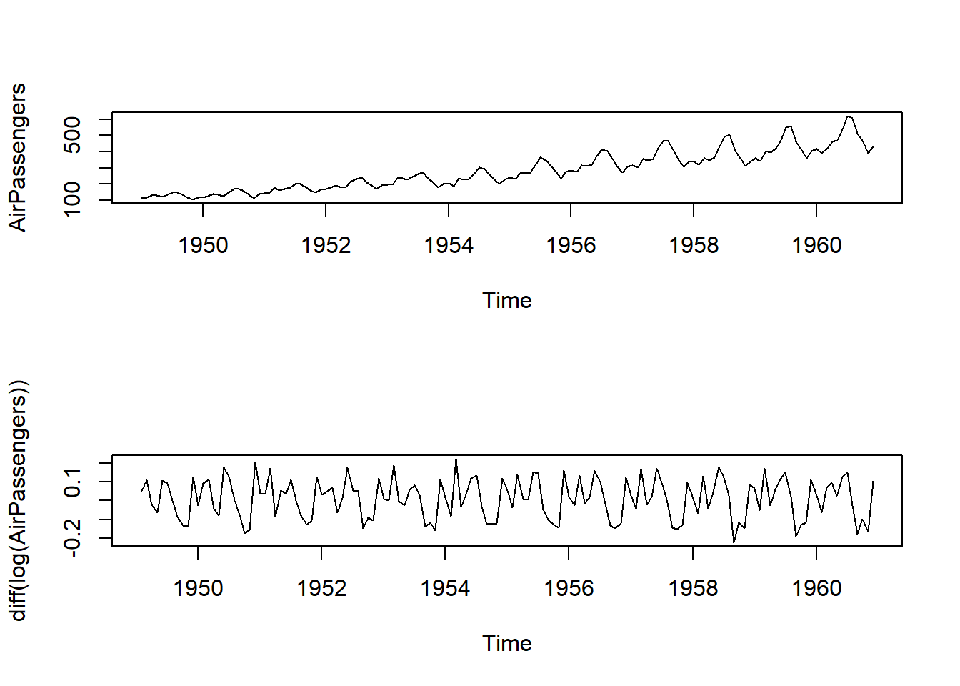 我们创建一个新的时间序列(AirPassengers)