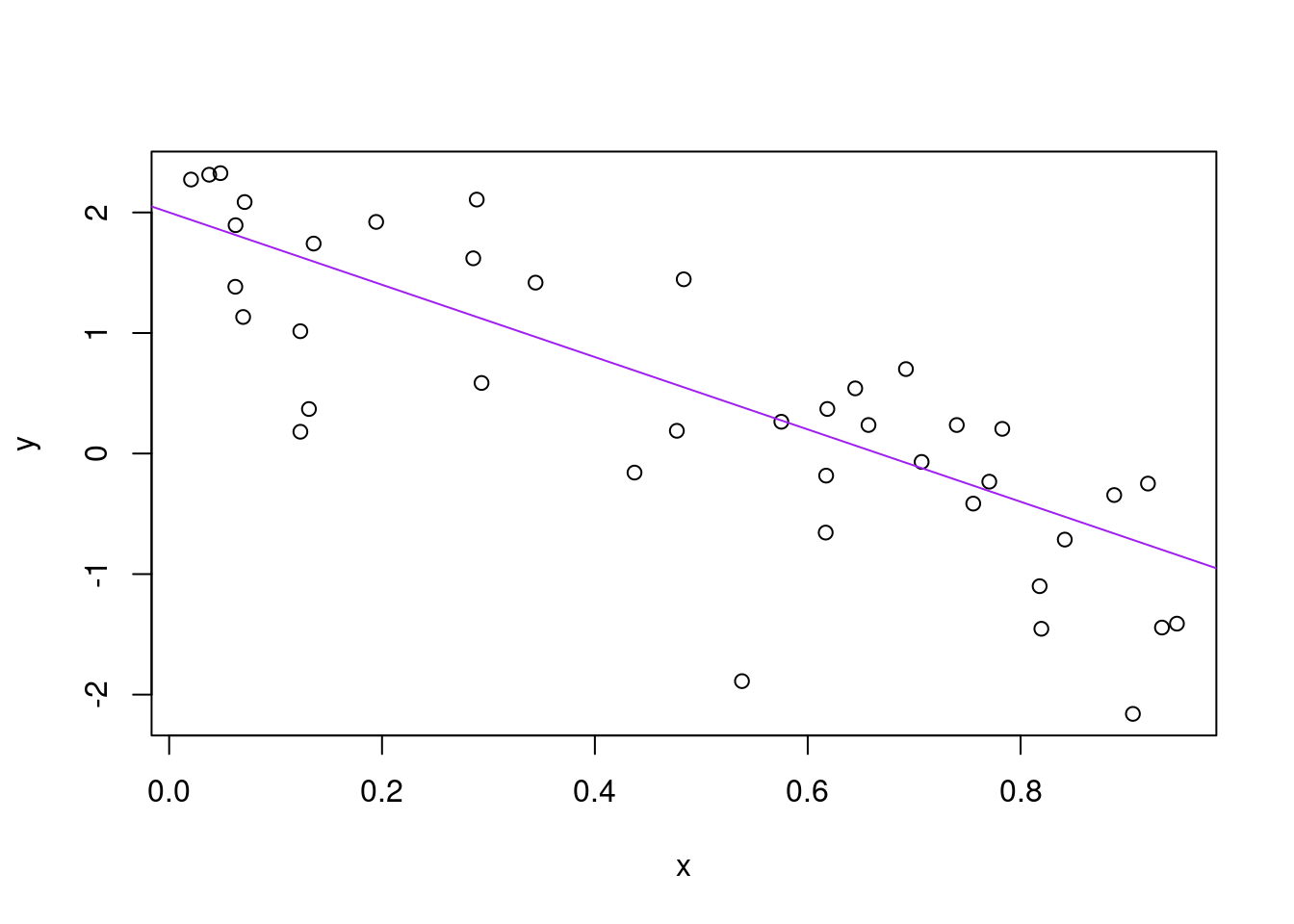 y <- a + b * x + rnorm(40, sd = sqrt(sig_sq))
