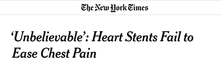 This New York Times article describes a randomized controlled trial (RCT) to assess the effectiveness of heart stents on easing chest pain.