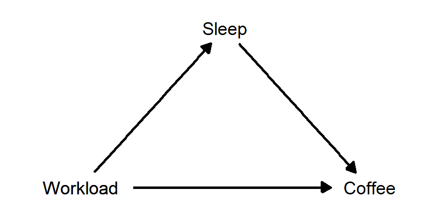 - Neb drinks more coffee when he’s had less sleep, and when he has more work to do. He also gets less sleep when he has more work to do. Sleep is a mediator variable: