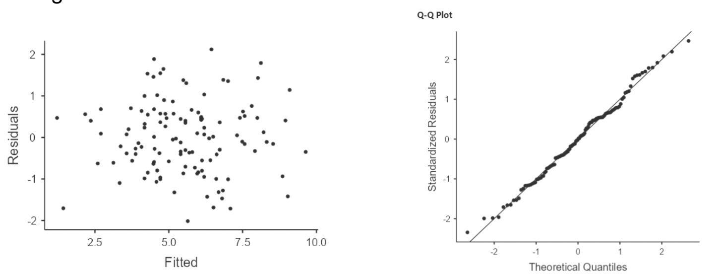 • Notice that the residuals are all vertically stacked? This is to be expected when predictor variables are categorical.