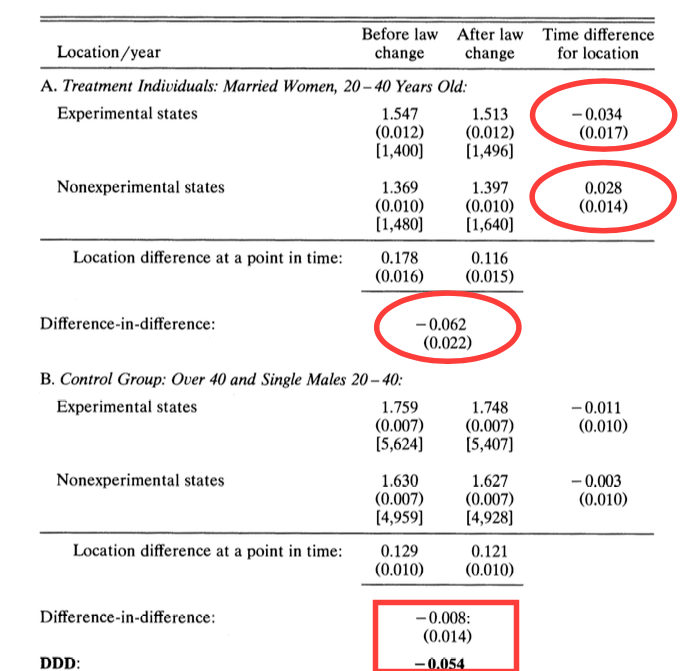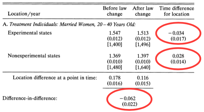 \[work=\beta_0+\delta_0posst93+\beta_1anykids+\delta_1(anykids*post93)+\epsilon\]