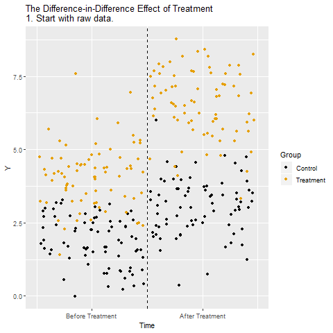 mydata$did = mydata$time * mydata$treated11.6.2 4 ways to do DiD