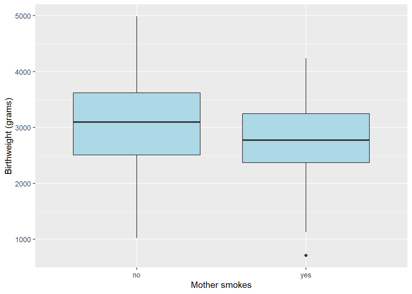 ## data: birthwt.grams by mother.smokes