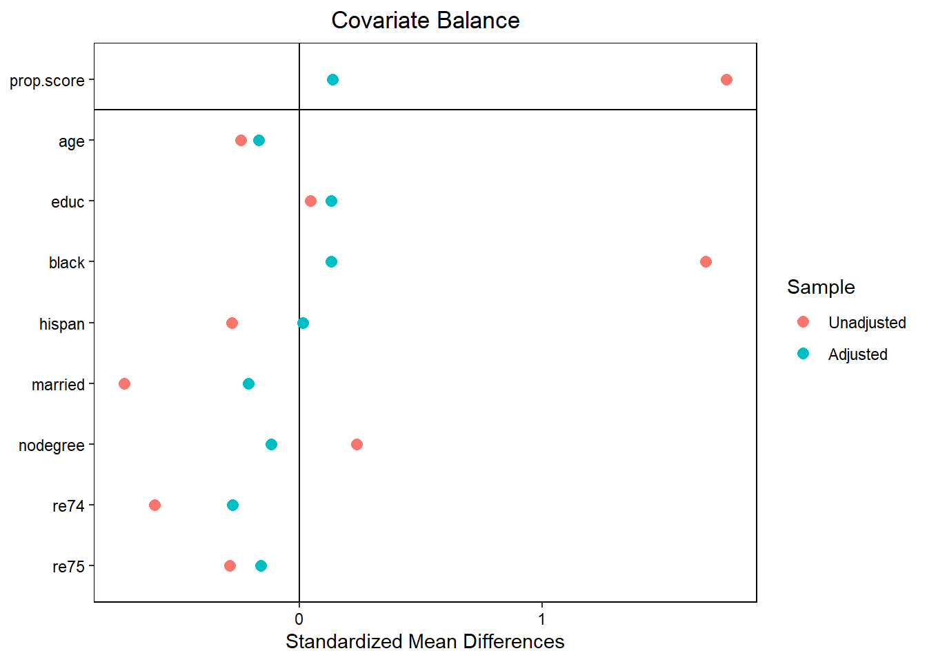lalonde.formu <- treat~age + educ + black+hispan + married + nodegree + re74 + re75