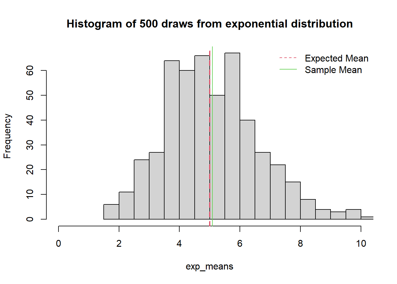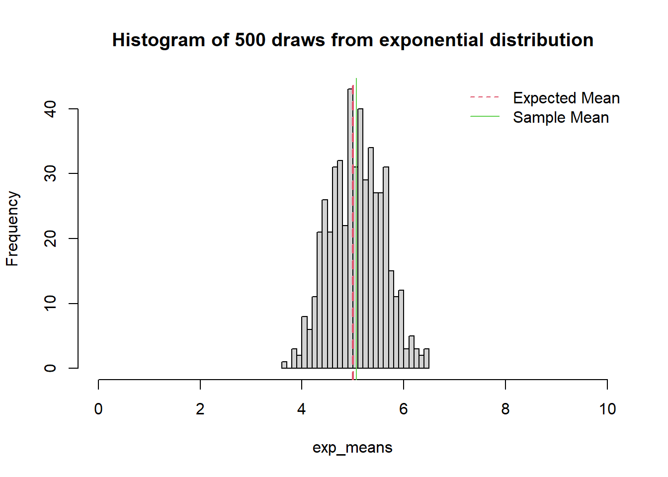 legend('topright', c("Expected Mean", "Sample Mean"),