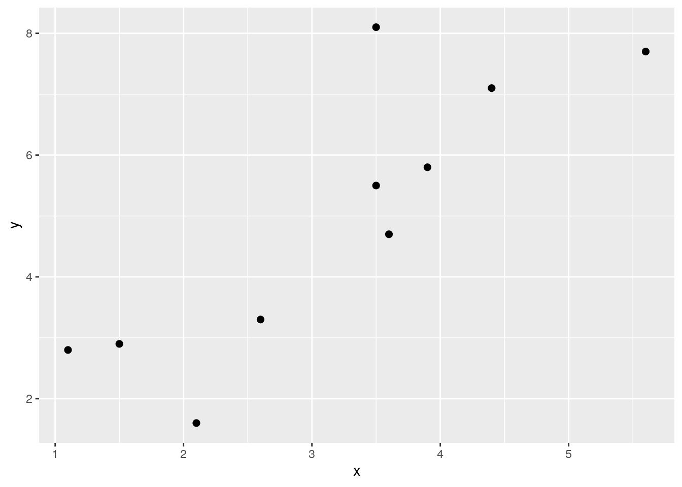 y <- c(2.8, 2.9, 1.6, 5.5, 4.7, 8.1, 3.3, 7.7, 7.1, 5.8)
