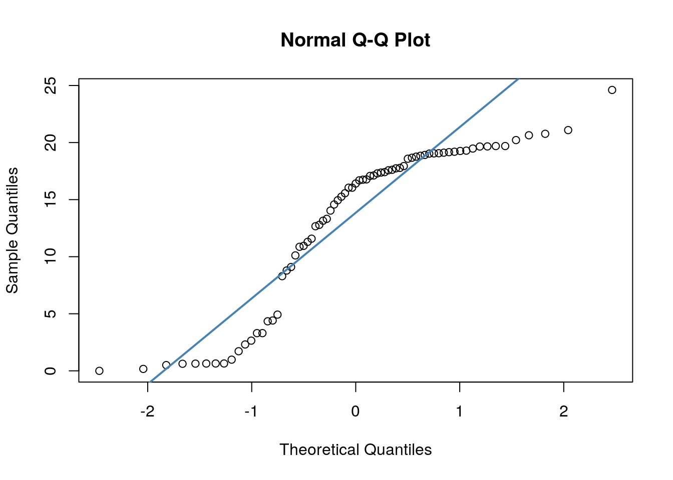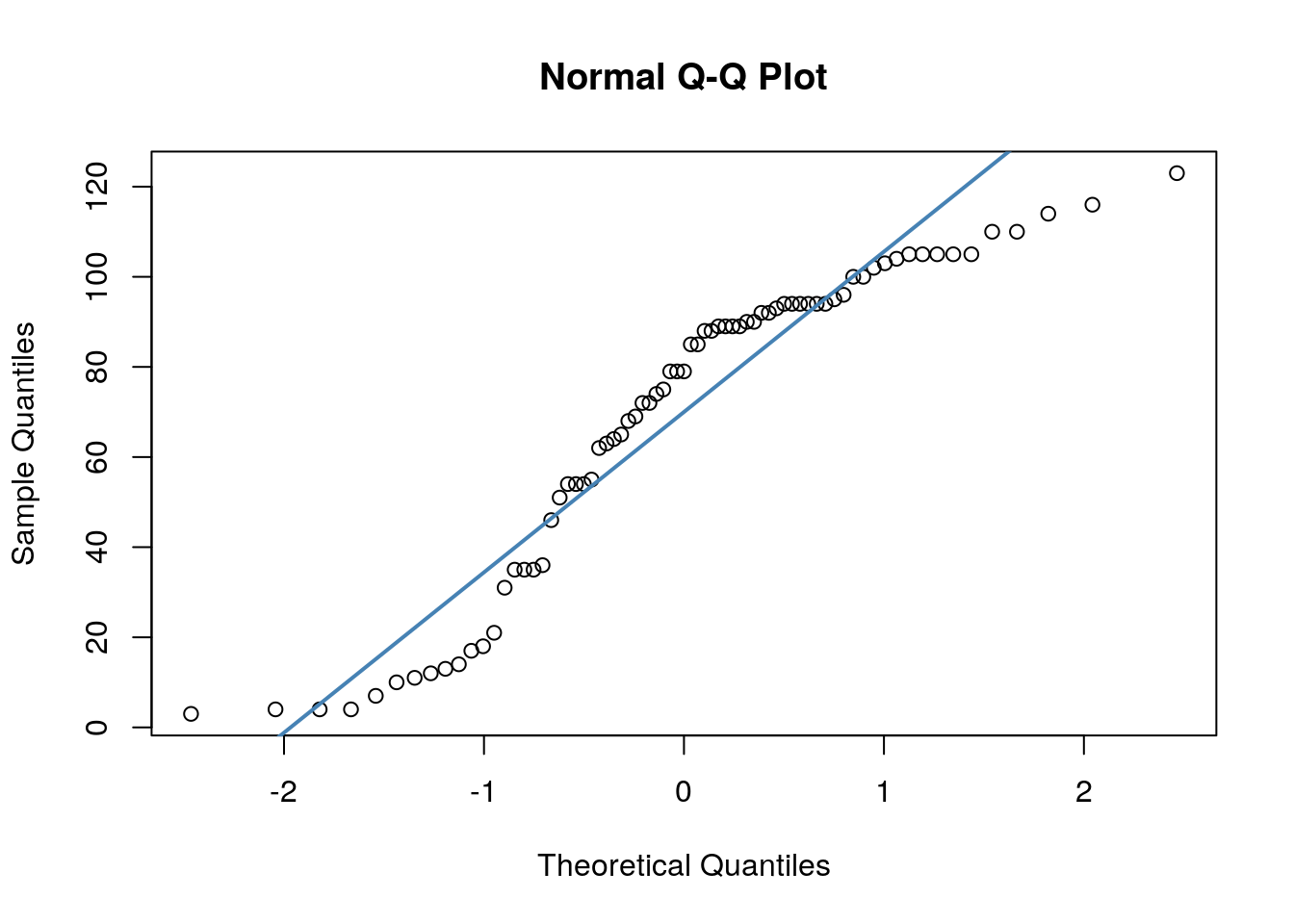 Using the Shapiro-Wilk test we note that our data are not approximately normal: