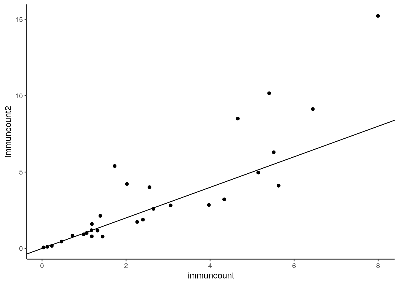 ggplot(df1, aes(x = immuncount, y=immuncount2 )) +