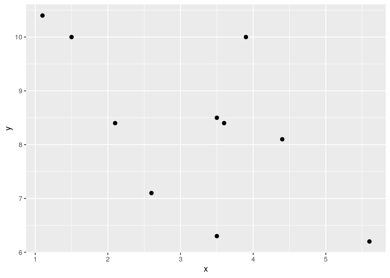 ggplot(df, aes(x = x, y = y)) + geom_point(size=2)