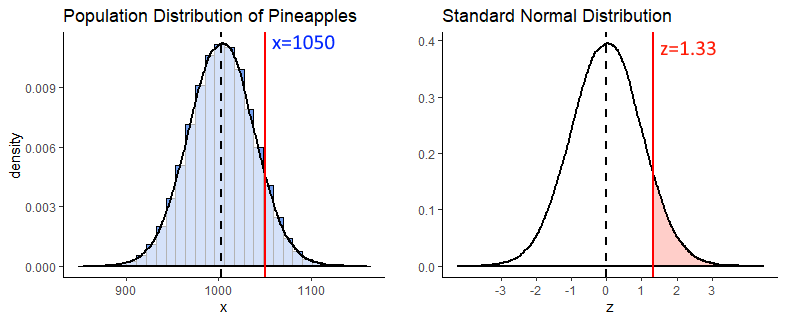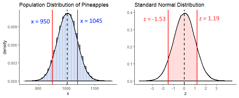 How does the standard normal distribution come about? We will discuss more about this distribution in section 7.0.3, but briefly it is obtained by converting all the values of a normal distribution into z-scores. z-scores are calculated by: