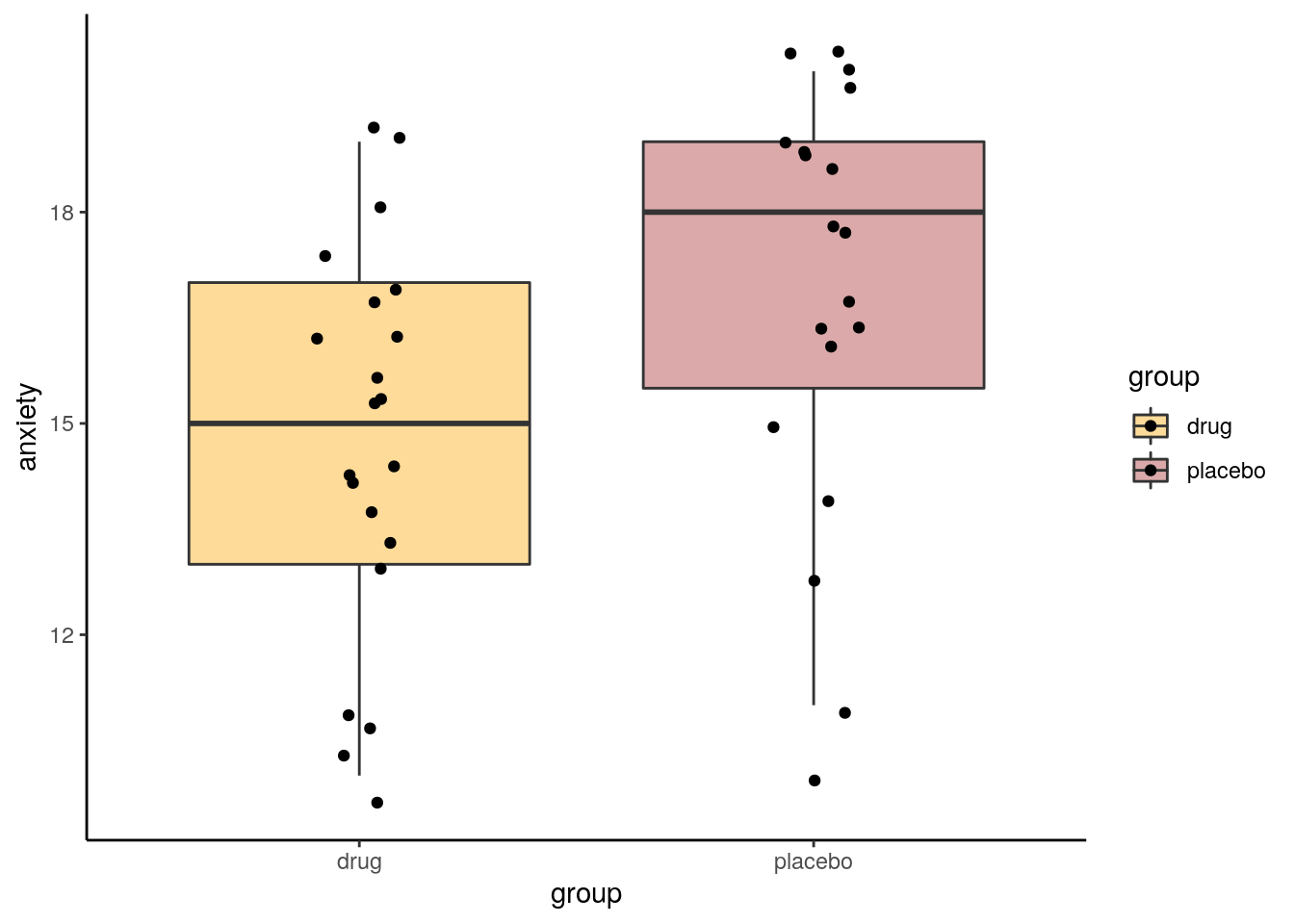 ## data: anxiety by group (drug, placebo)