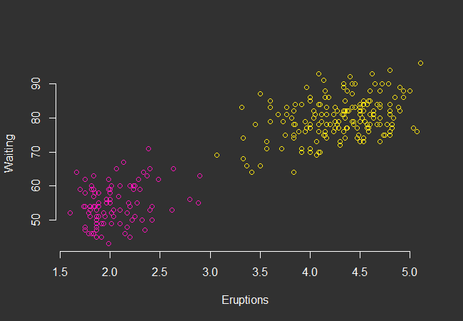 - If your model from this run is better than your previous model, make a new plot of the data using your new best model’s class assignments and comment on the estimated groups.
