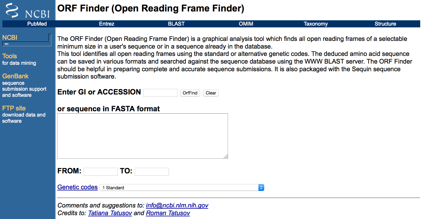 For this task, you will use the NCBI ORF Finder at http://www.ncbi.nlm.nih.gov/gorf/gorf.html