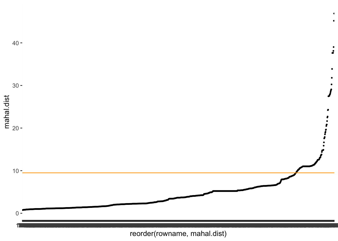 mahalanobis(data, colMeans(data), cov(data))↩︎Function from