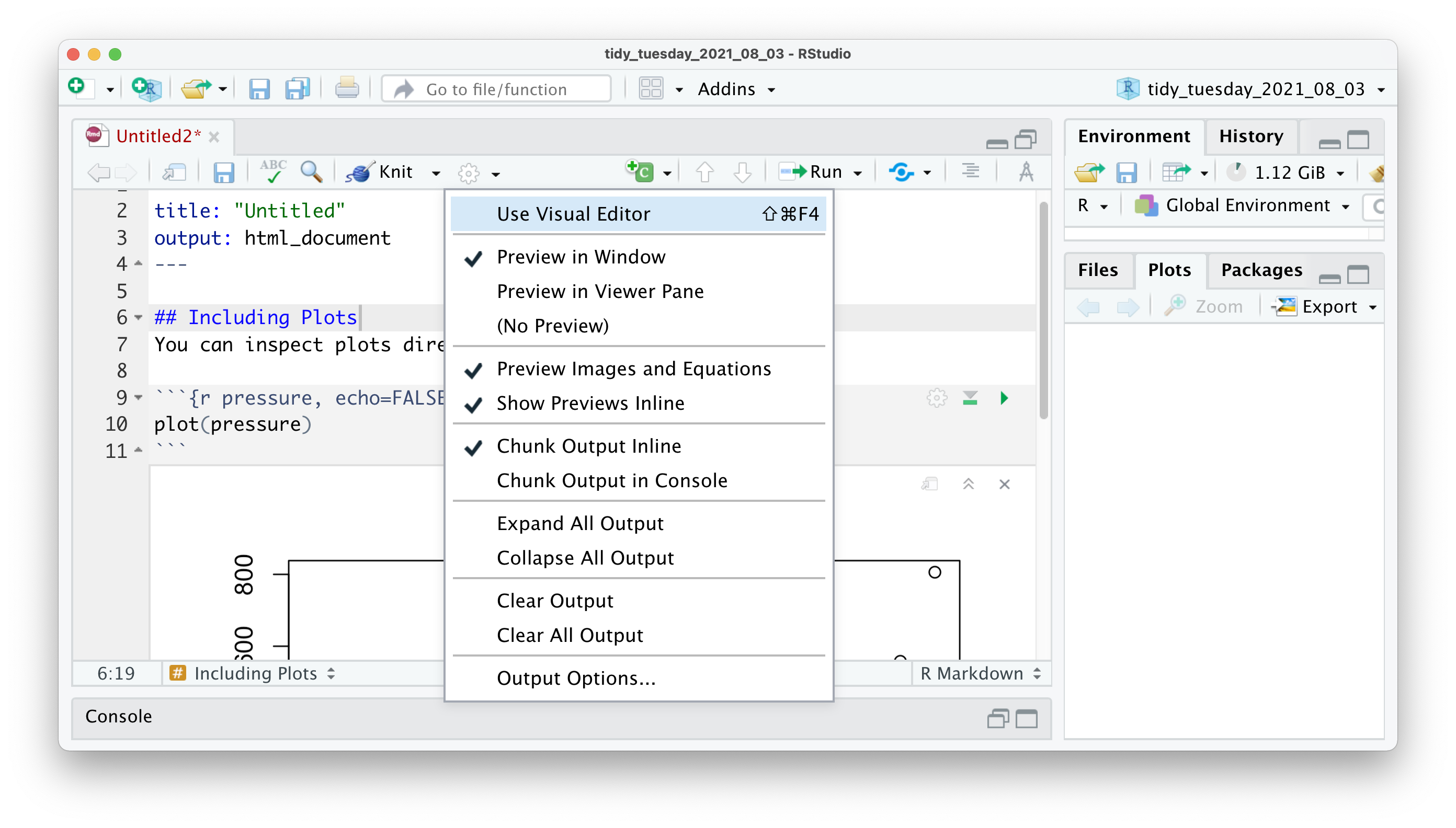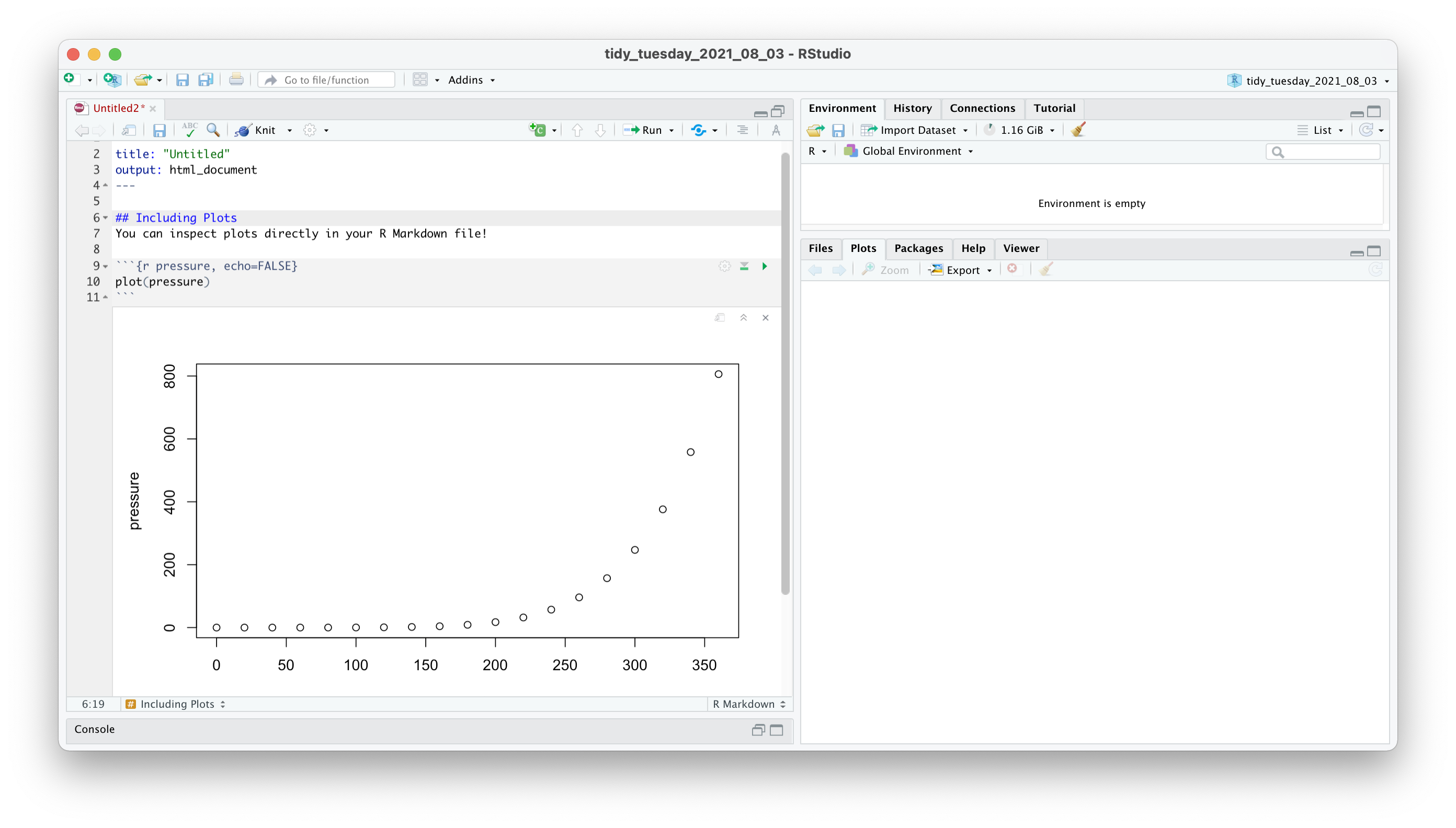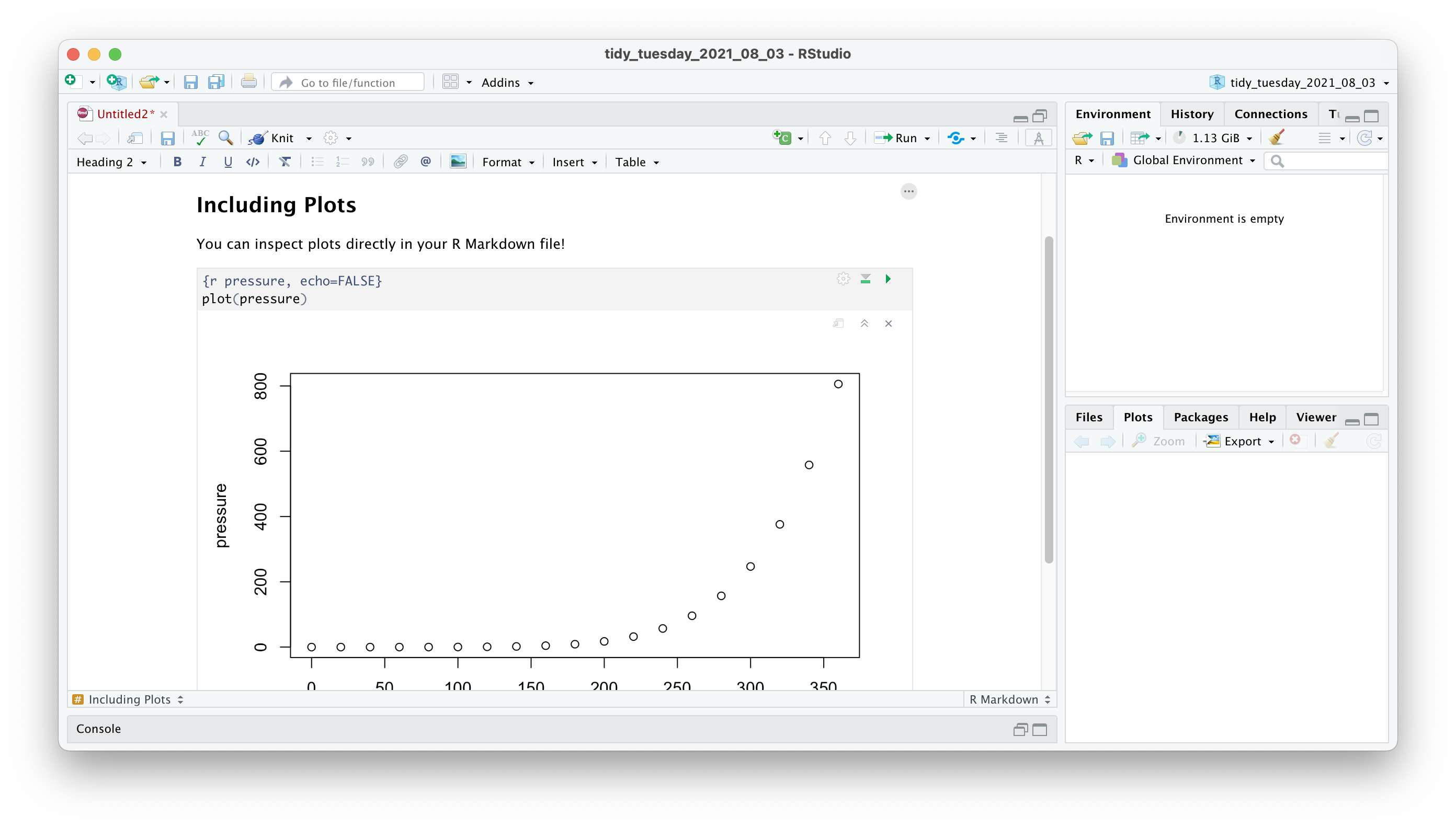 So, when should you use an R script, and when should you use R Markdown. The rule-of-thumb is that if you intend to write a report, thesis or another form of publication, it might be better to work in an R Markdown file. If this does not apply, you might want to use an R Script. As mentioned above, R Markdown files emphasise text, while R scripts primarily focus on code. In my projects, I often have a mixture of both. I use R Scripts to carry out data wrangling and my primary analysis and then use R Markdown files to present the findings, e.g. creating plots, tables, and other components of a report. By the way, this book is written in R Markdown using the bookdown package.