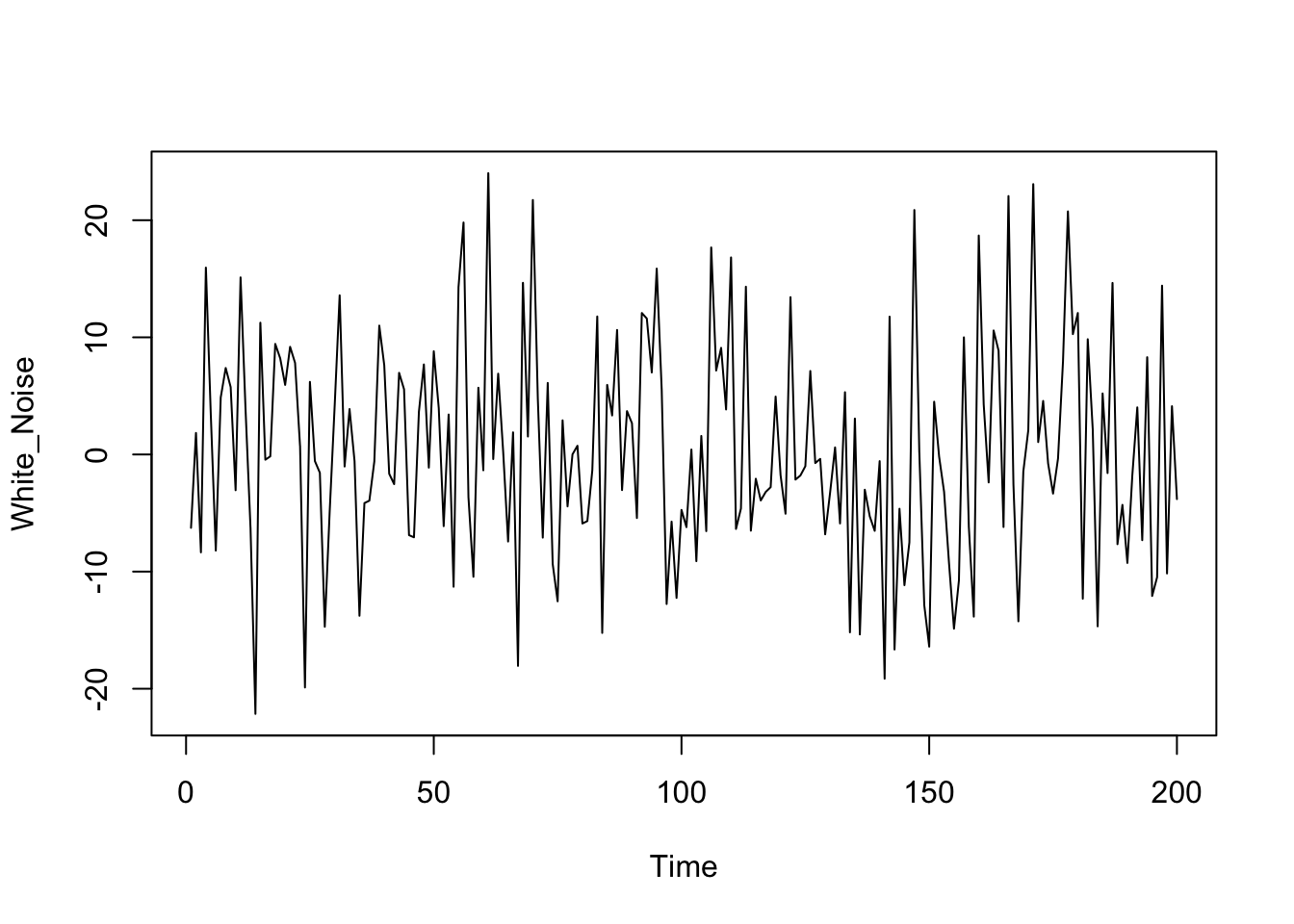White_Noise <- arima.sim(model = list(order = c(0, 0, 0)), n = 200, sd=10)