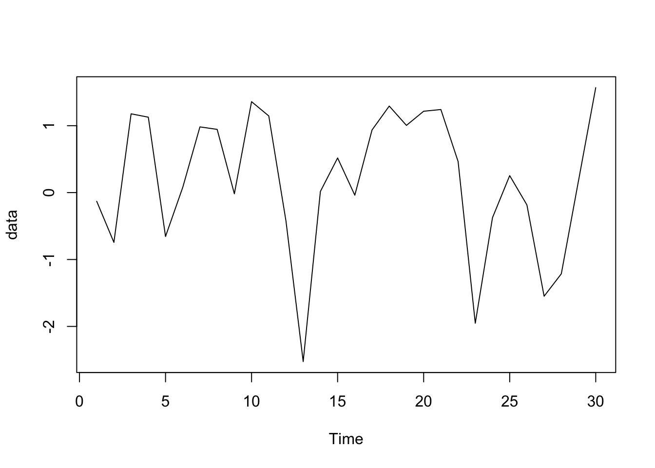 Note that the plot produced by the above code does not have a sensible labeling on the x-axis. Each point is labelled by its index as a data point, rather than by the relevant month and year. This can be corrected by converting the data to a ts object, an object designed for working with time series data.