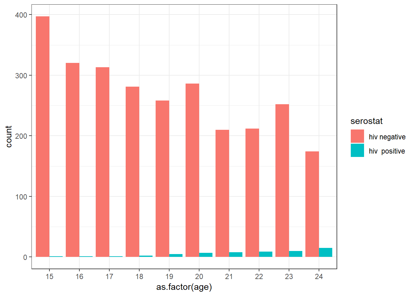 tz %>% ggplot(aes(x = as.factor(age), fill = serostat)) +