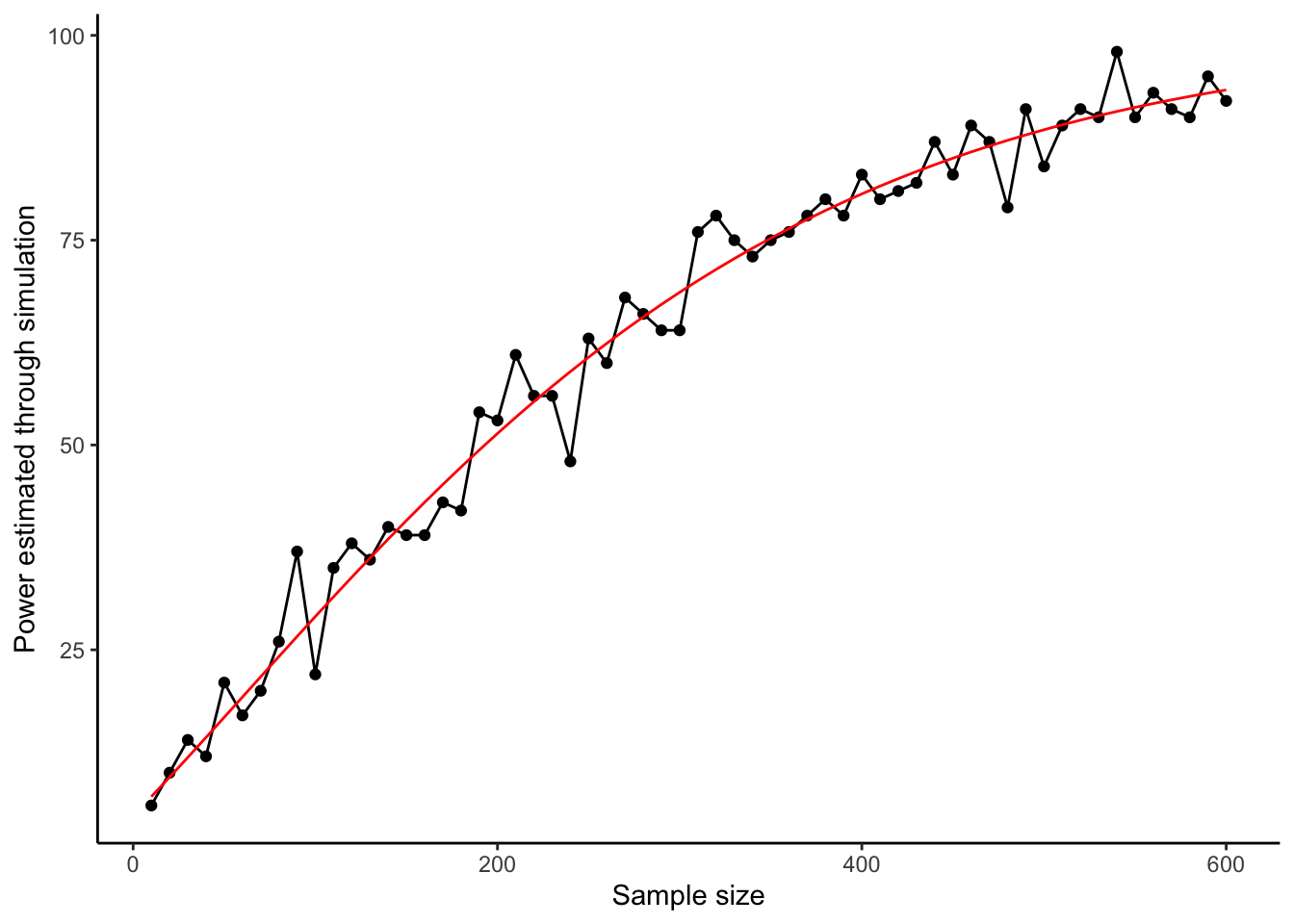 ylab("Power estimated through simulation")