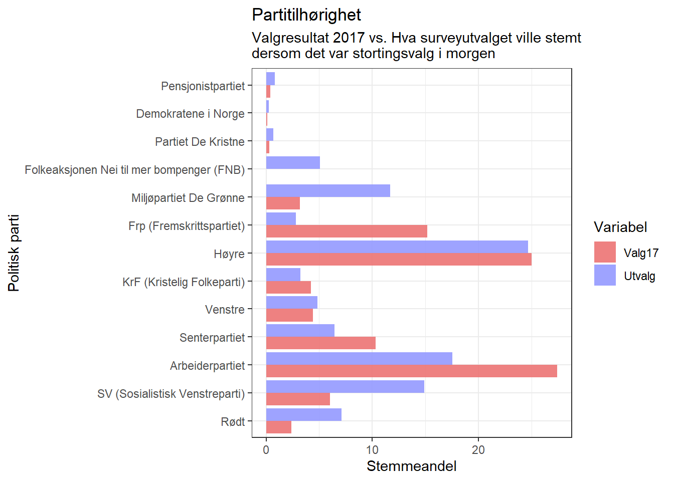 2.7.1 Utvalg sammenliknet med valgresultatet i 2017: