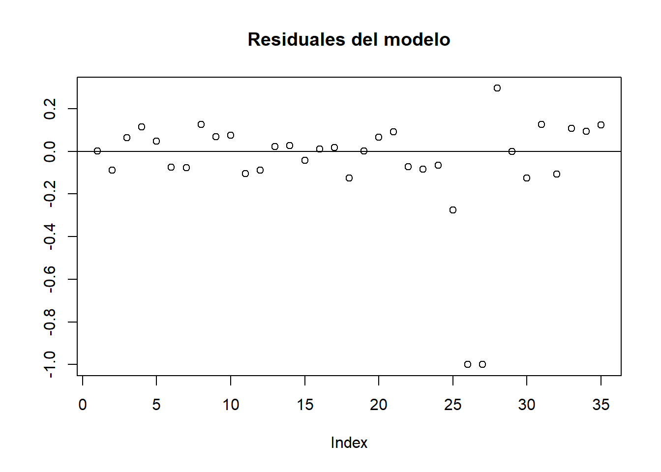 plot(res2$residuals,ylab="", main="Residuales del modelo")
