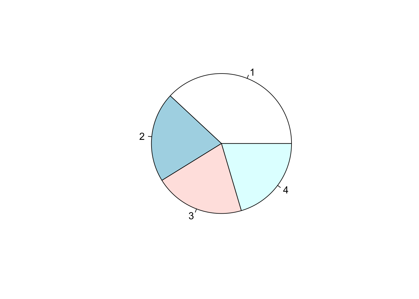 El Gráfico de sectores se realiza con la fucnión pie de R, de la siguiente forma: